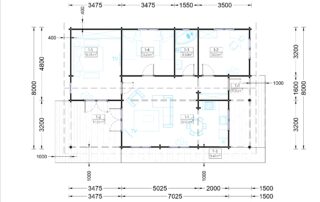 Dimensiones externas (ancho x profundidad) 800cm x 1200cm