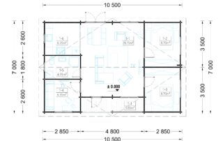 NO INCLUYE base de obra, diferente grosor de tronco en paredes, Instalación de luz y agua, techo aislado, alojamiento montadores 2 personas 6 días, grupo electrógeno sino hay toma de luz cerca, descarga casa en obra con camión-pluma ni descarga teja sandwich, pintar por dentro.